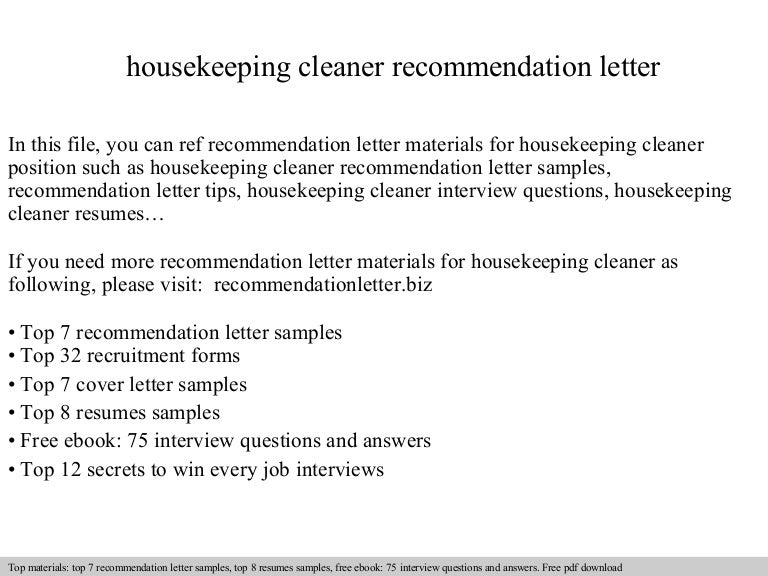 Need to write a professional Housekeeper Recommendation Letter? Download our letter of recommendation templates (for student, college, job, business + more) in Do you need to write or request a letter of recommendation? Our letter examples and samples make it fast and easy to write an appropriate letter.