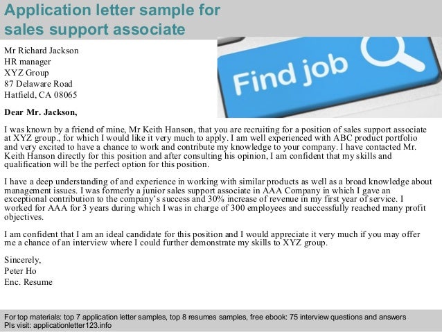 Sales support associate application letter