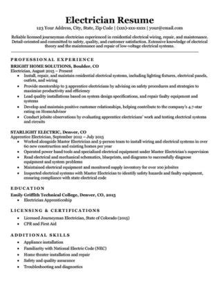Our electrician resume example and writing tips will help you spark a hiring manager's interest, whether you're an apprentice, journeyman, or master electrician. The electrician resume format is made available online for free download so that the electricians Using the CV or Basic Resume Templates is quite easy. Make your Professional CV for Electrician profession by editing our top ms-word formats as per your requirement.