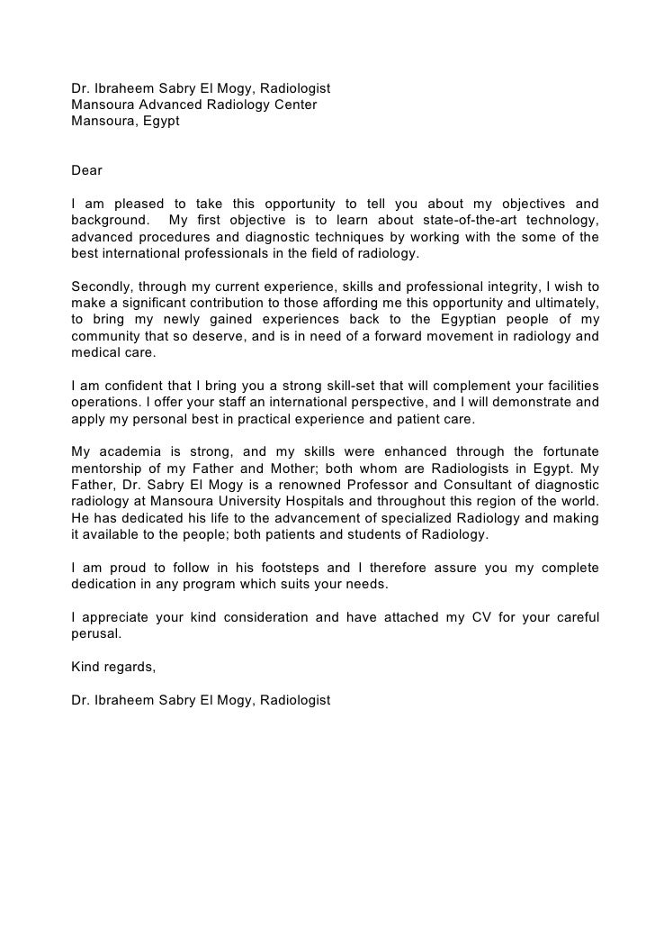 Radiography Cover Letter. Dear Sir/Madam Self-Assessment Resumes Cover Letters Interviewing Job Search Networking Professional Development Radiography Sample Cover Letters CONTACT Career Services Cover letters. Specific job duties of a Radiographer.