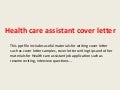 Covering Letter For Health Care Assistant. Get MA cover letter samples, examples, and bonus tips from experts to get that great job fast! Physical Therapy Aide Cover Letter Example.