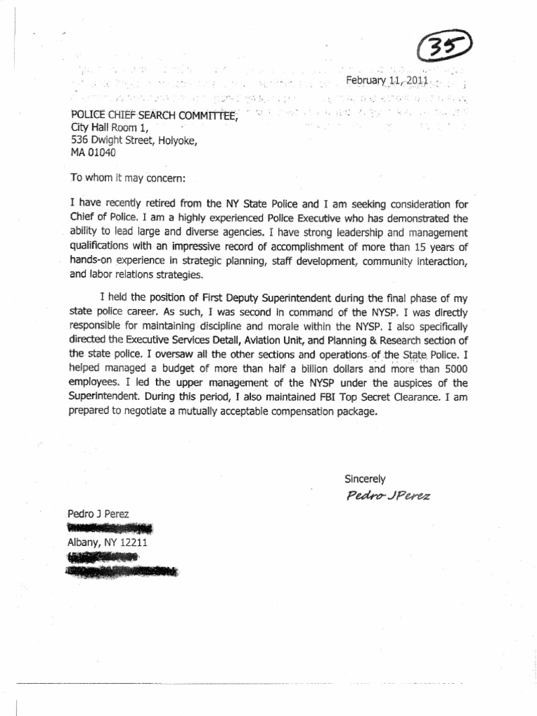 Pedro Perez, Holyoke Police Chief Finalist Cover Letter ...