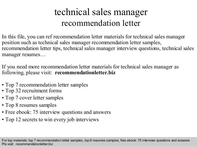 Technical sales manager recommendation letter