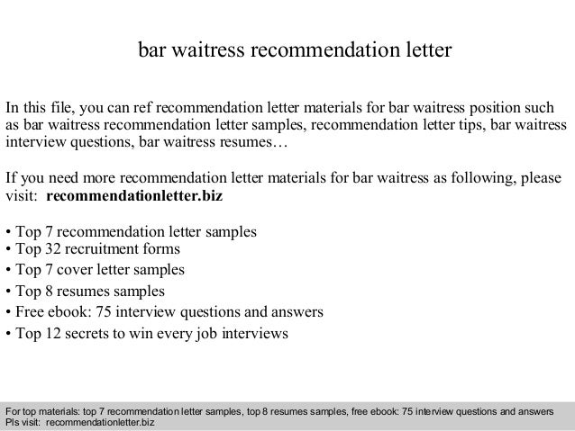 Cover Letter Examples For Waitress. Our free waiter / waitress cover letter sample covers all the bases. Writing a great Waitress cover letter is an important step in your job search journey.