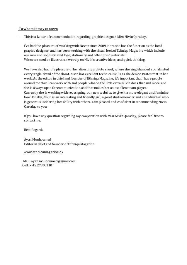 Reference Letter Graphic Designer. Online generator for those who are on their way of looking for a new job. Writing a great Graphic Designer cover letter is an important step in your job search journey.
